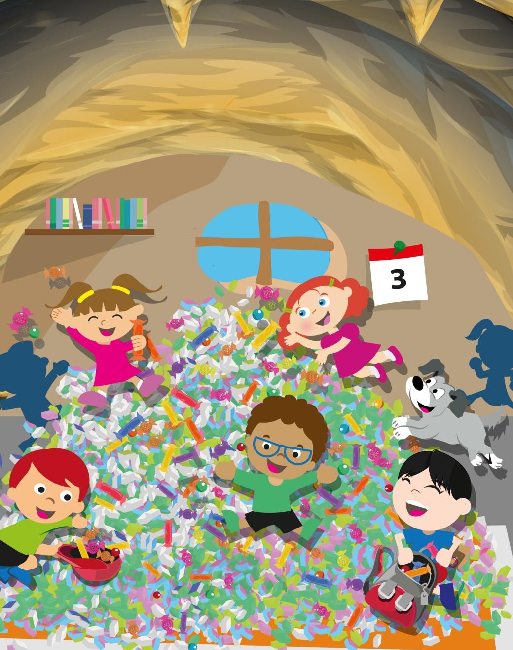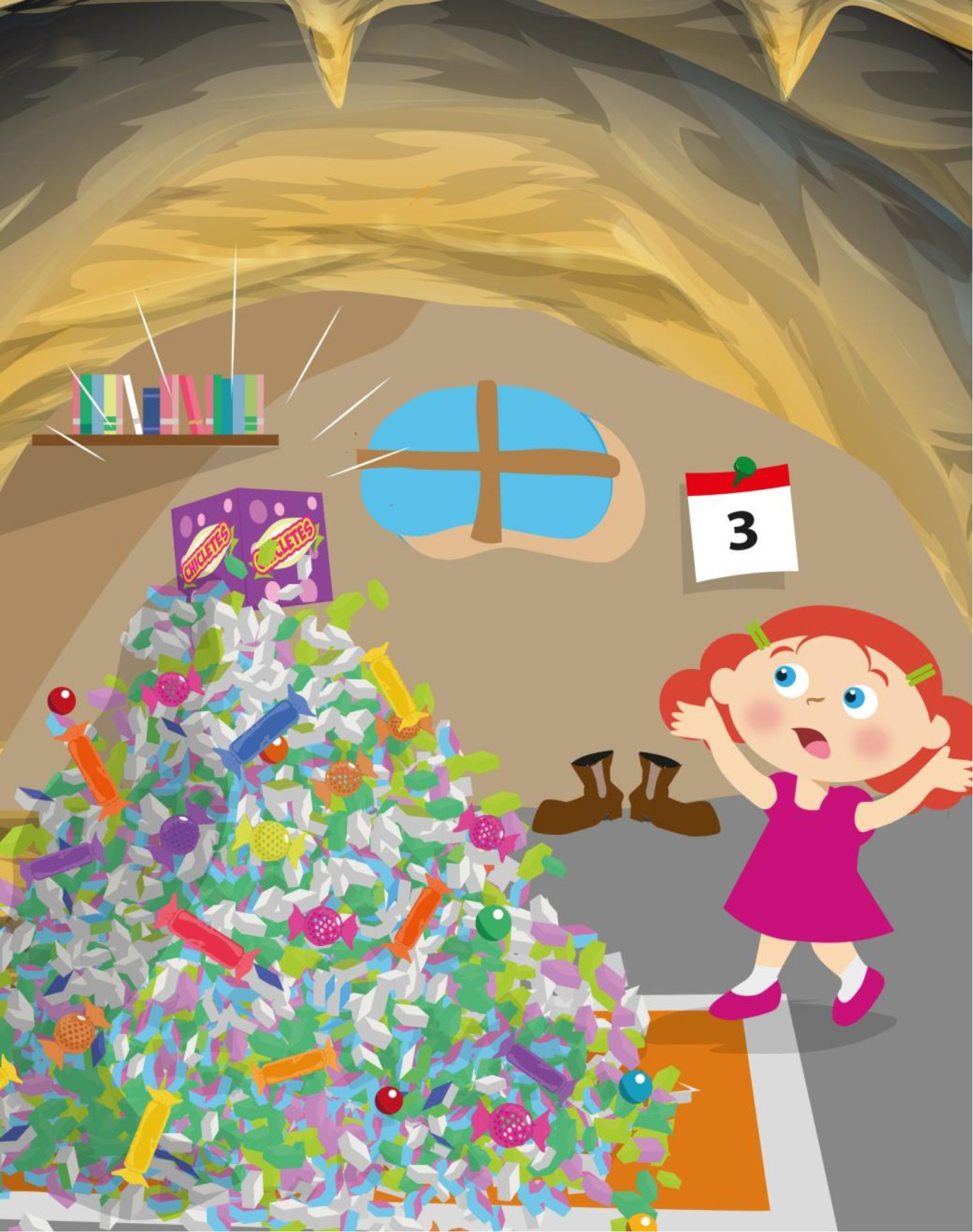 A menina, mais do que depressa, pegou sua caixinha e correu para a cidade, avisar as outras crianças, sobre onde estavam escondidos os chicletes roubados.