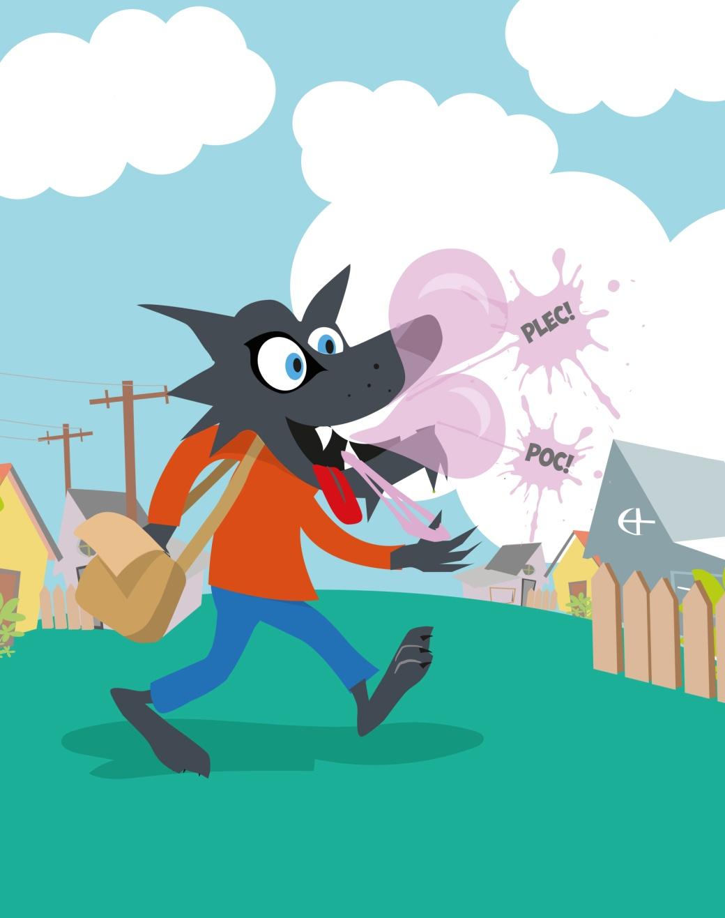 A partir de então, as crianças daquela cidade viram-se livres do Lobo ladrão e puderam continuar mascando seus deliciosos chicletes tranquilamente.